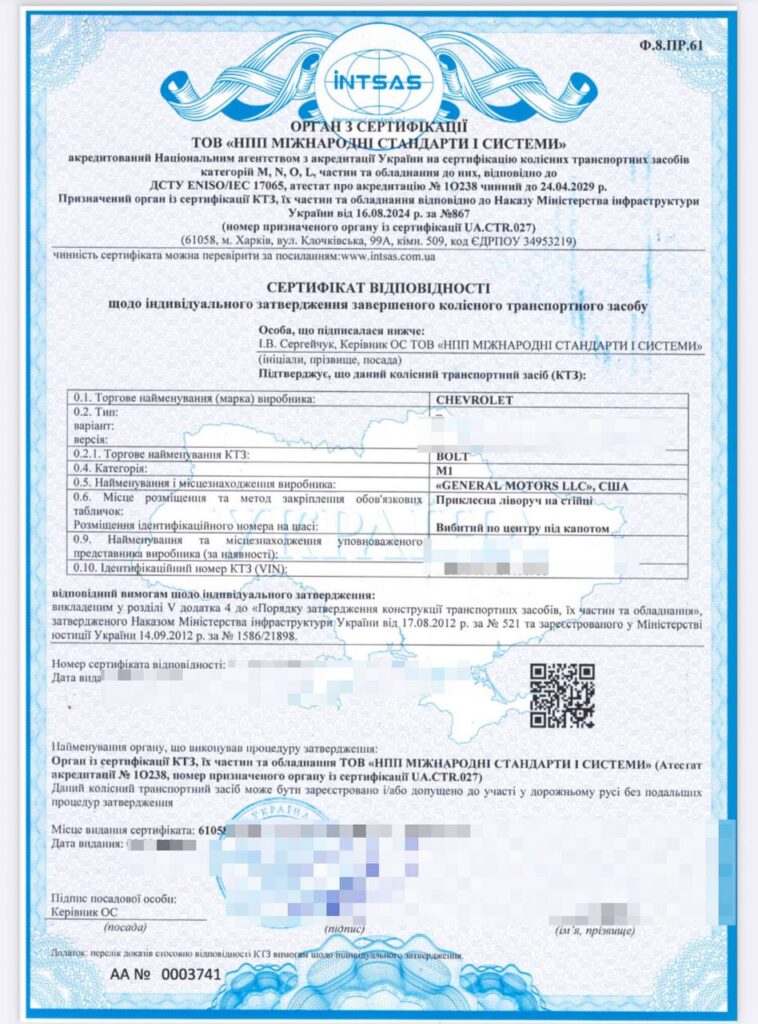 Сертифікація колісних транспортних засобів