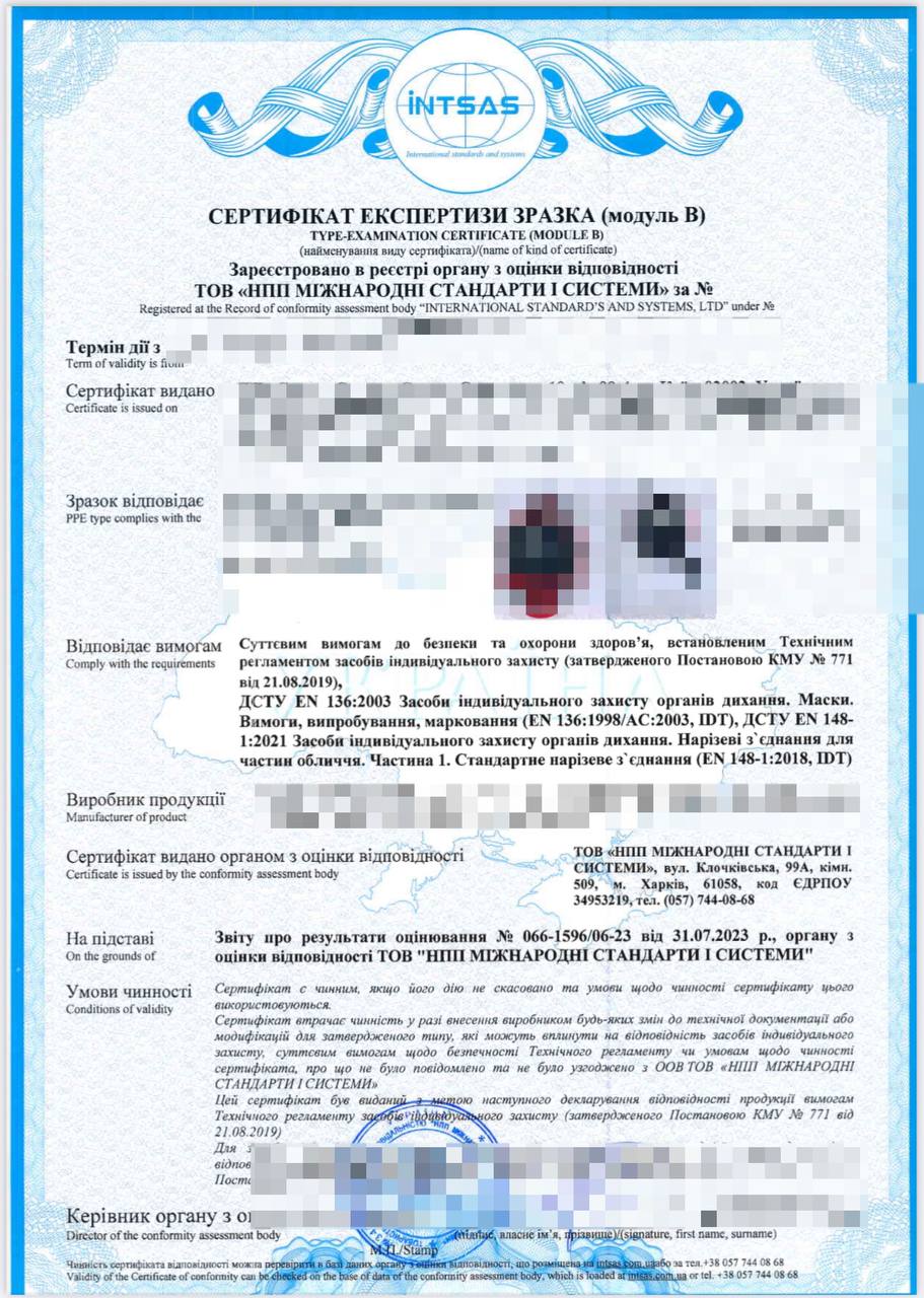 Довірте оцінку відповідності  та сертифікацію засобів індивідуального захисту провідному компетентному органу України відповідно до вимог українського законодавства та отримайте Сертифікат відповідності.